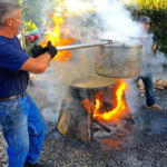 Pelletier’s Fish Boil consists of fresh, locally caught whitefish cut into chunks, baby red potatoes, and Texas sweet boiling onions. The ingredients are quickly boiled to perfection in a stainless steel kettle over a wood fire. Salt is the only seasoning used, although its function is to increase the water’s boiling temperature, allowing fish oils to rise to the water surface. Immediately before removing the fish, potatoes and onions, the “Master Boiler” tosses #1 fuel oil into the fire below the kettle, resulting in a tremendous burst of flame that forces the kettle to “boil over,” signaling the beginning of a wonderful dining experience. –Laurel Ciohon