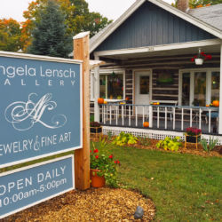 I got to meet the lovely Angela Lensch this fall as she enthusiastically showed me around her gallery, which was previously the Ohman family log home on the south end of Egg Harbor on Hwy. 42. Angela told me she grew up on a farm outside of Decorah, IA and received her BFA in Sculpture and Furniture from the Minneapolis College of Art and Design. She moved to Door County in 2002 where she worked at the Hardy Gallery and Peninsula Art School. Focusing on jewelry creation, Angela opened her own gallery on May 7, 2014.