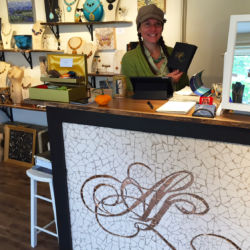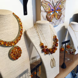 Angela not only features her own wearable art in her gallery, but the creations of other local artists as well. There are presently 12 artists on display at Angela Lensch Gallery, including Dan Eggert’s photography art and Sally Slattery’s unique handmade items, as well as pieces from college friends.
