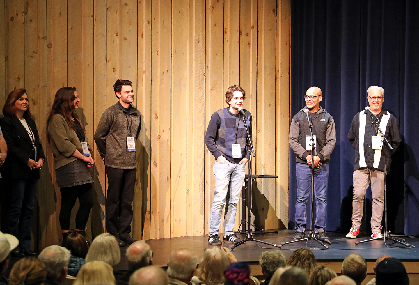 Photos L-R: Joe Schwaba, Golden Mug presentation; Pete Schwaba, Keynote Speaker; JB Thompson, Jacob Lefeber and Ben Leasum; Marty “Meatman” Sosnowski, David Jackson and Adam Koepke; Student Filmmakers: Alli Karas, Jenavieve Plutz, Joely Hurkman, Albino Anzurez, Jacob Lefeber, Ben Leasum and Ben Cohn; 2026 Golden Mug Awards; Janique L. Robilard, Producer, with Chris Opper, DCFF Executive Director; 4th from left: Janique L. Robilard, Producer, The Librarians, and sponsors.
