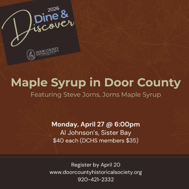Join the Door County Historical Society on Monday, April 27 for a warm, story-filled evening celebrating one of the peninsula’s most beloved seasonal traditions: maple syrup.