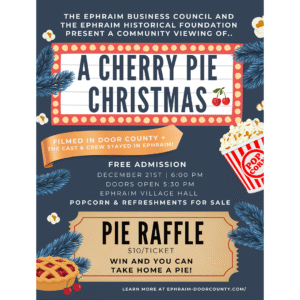 Event Details: Date: Sunday, December 21, 2025 Time: Doors open at 5:30 PM; film begins at 6:00 PM Location: Ephraim Village Hall Admission: Free Extras: Popcorn and refreshments for sale, Ephraim merchandise for purchase, and Pie Raffle Tickets available for $10 each. All proceeds from concessions, merchandise, and raffle tickets will help support the ongoing work of the Ephraim Historical Foundation and the Ephraim Business Council. For more information, visit the Ephraim Business Council’s website or follow along on social…