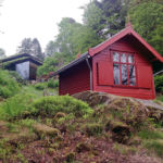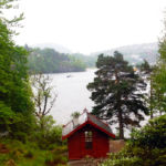 But rather than going into a detailed account of the workings of the music, I would instead like to leave you with a picture. It is a picture of Grieg’s home outside of Bergen, high on a hill overlooking what looks like a lake. Actually, this lake is an offshoot of a much larger fjord, and there is a small island out in the water visible from Grieg’s property. The way down to the water is fairly steep but passable. There are large rock outcroppings here and there, and the vegetation deals with all this in a very interesting fashion. Halfway down this hill is a very small, one-room hut. It is Grieg’s studio. It is painted rustic red and has a few details that suggest that it is Norwegian. It is where he wrote much of his music. There is a door with a window in it on the upper side, and a small picture window opposite on the lower side facing the water. Inside, in front of that window facing the water, is a modest sized table and chair. There is a fishing pole to the side of the table, and little more. Not much else would fit in this almost closet-sized workshop. The main house sits at the top of the hill – Troldhaugen, this idyllic place is called.