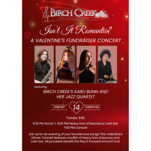 Looking for the perfect Valentine’s plan? Skip the crowded restaurants and join us at Birch Creek Music Performance Center for a curated evening of jazz and elegance! On Saturday, February 14, we present "Isn’t It Romantic?" featuring the incredible Karli Bunn Quartet. If you love the Great American Songbook, this is a night you won't want to miss. It’s more than just a concert—it’s an evening of elegance and community. Enjoy heavy hors d'oeuvres catered by Culinaria, a social hour,…